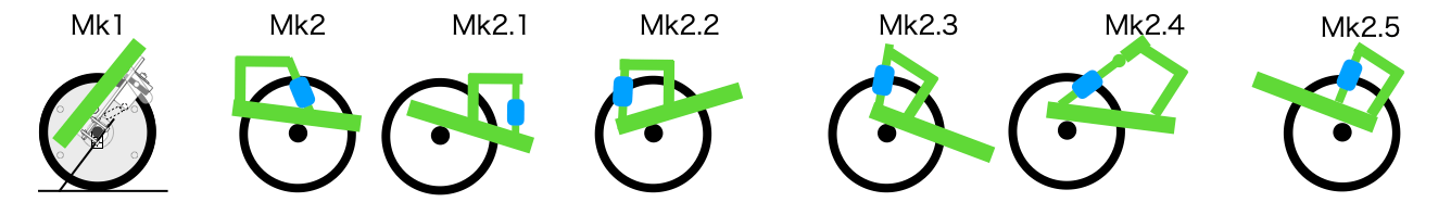 施策を重ねて、現在の構成に変更した。 フレームに沿ってサスペンションが配置されており、有効に働いている。新たに横方向に補強しており、剛性に問題はない。 汎用的な金属部品を組み合わせて実装しているため、後端が無駄に飛び出しているのが惜しい。